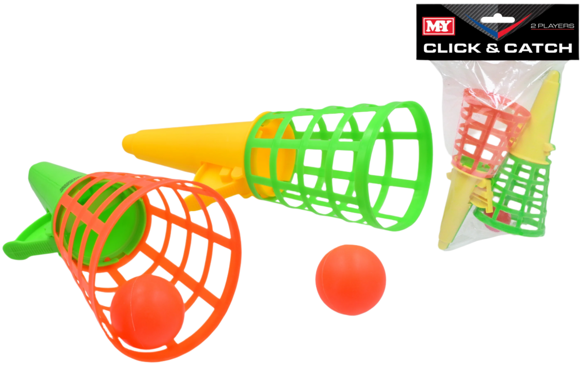 Introducing Click and Catch, the fun and addictive game that challenges your reaction time and hand-eye coordination! This game comes with two handheld clickers and a ball that you need to catch using the clickers.
