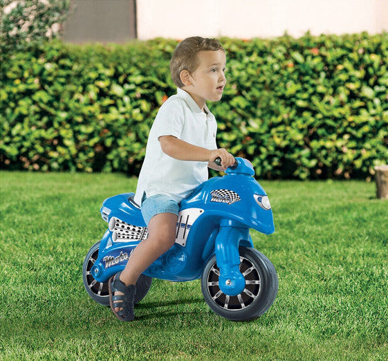 Perfect for outdoor play, your child will love riding around on this moto. They can use their feet to balance whilst they push themselves round, and the handlebars control the steering.