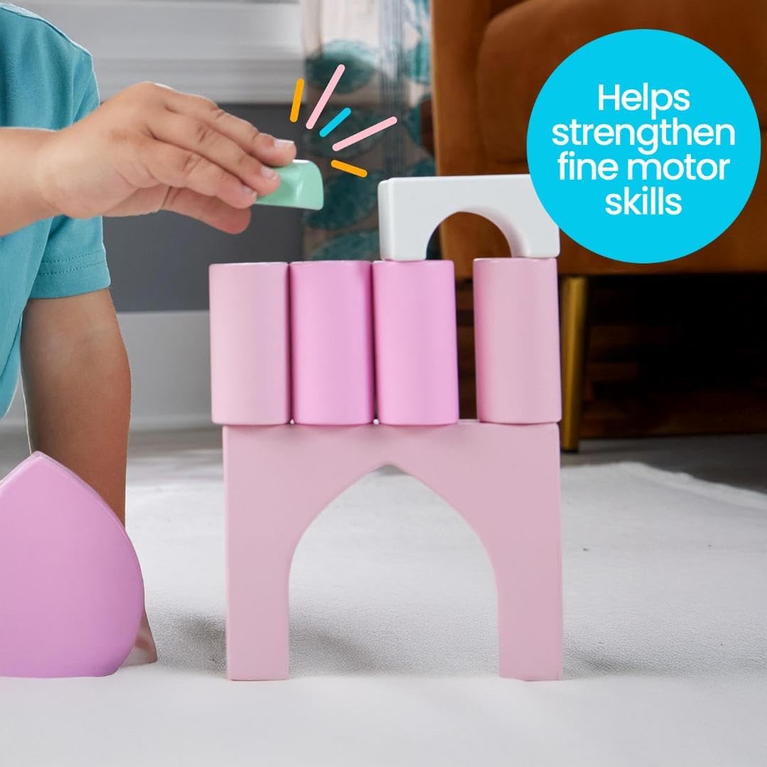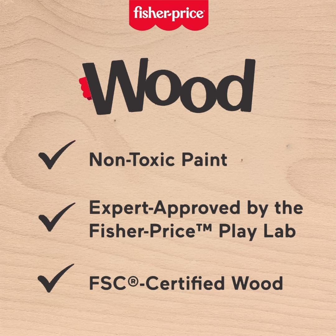 Fisher-Price Wood Toddler Toy Castle Block Set, 28 Wooden Pieces for Stacking Developmental Play (HXT80)
