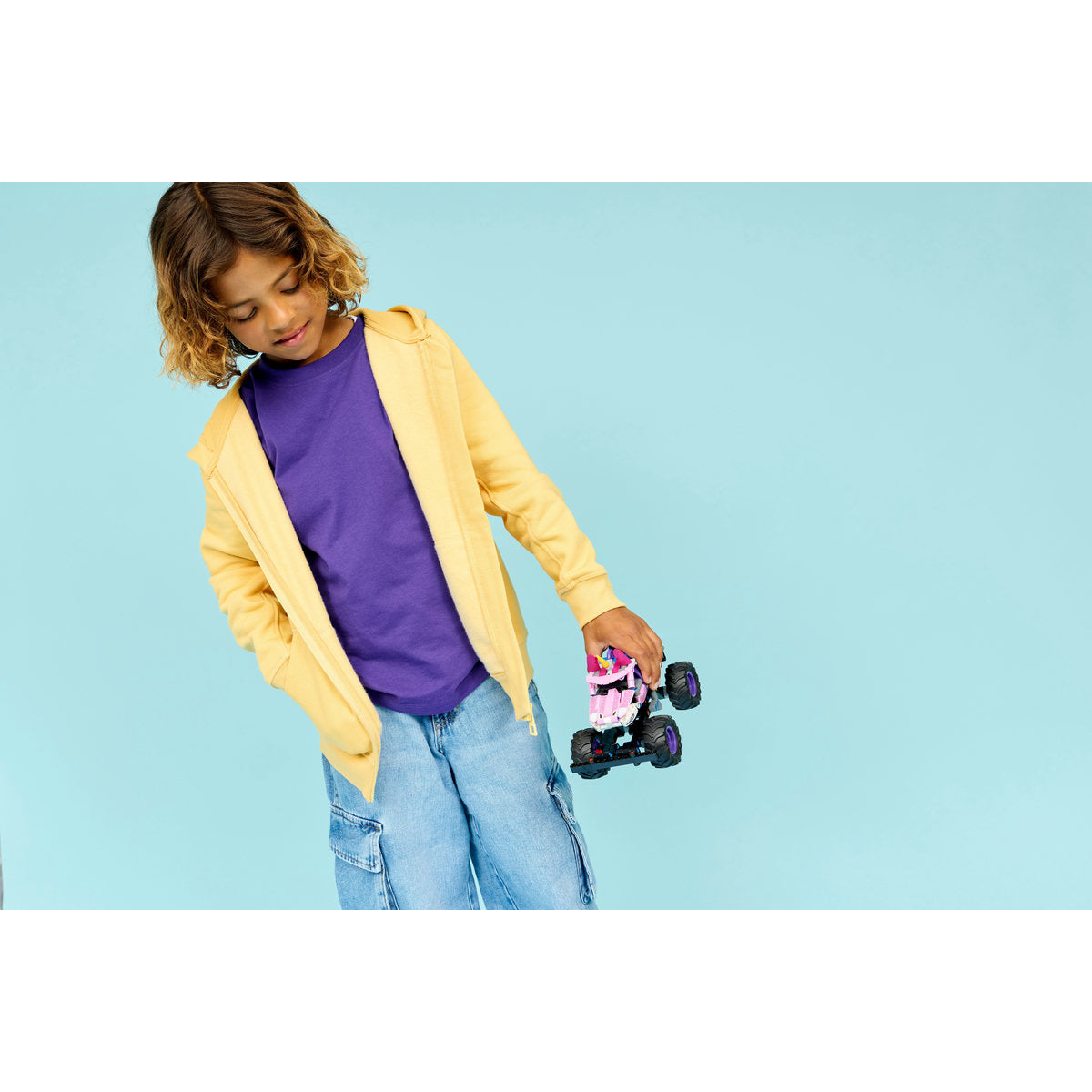 Get ready for wild moves and daring stunts with Monster Jam™ Sparkle Smash™. This mighty truck is packed with attitude and ready to take on its rivals. Build the truck with its huge tyres and iconic design. Then pull back the vehicle to send it speeding along as you recreate the jaw-dropping tricks of the Monster Jam arena!