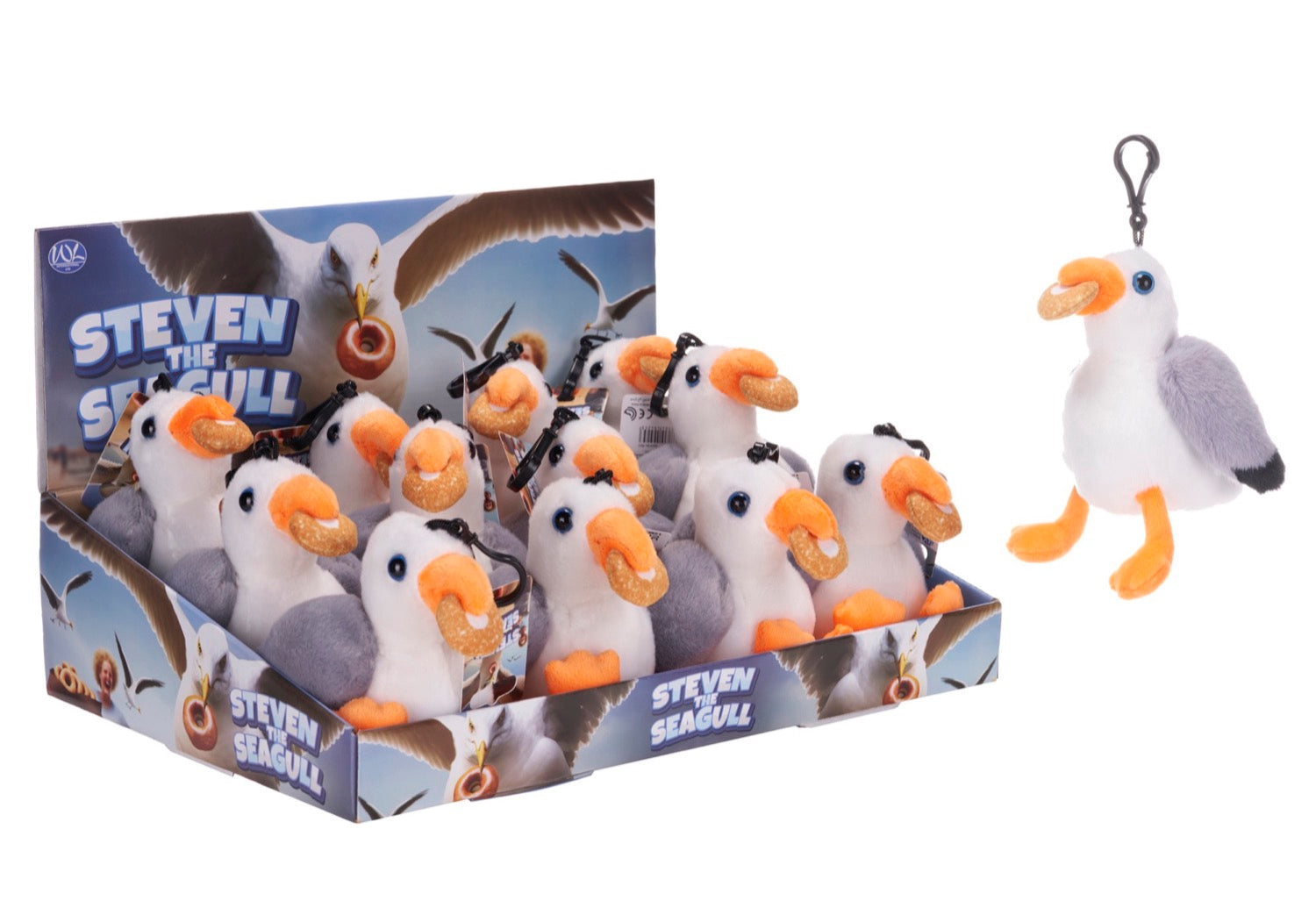Stephen The Seagull With Doughnut - Bagclip is a delightful 5-inch (13cm) plush accessory perfect for adding a touch of fun to your bags or keys. This soft, lightweight seagull holds a colorful doughnut, making it a charming and unique bag clip that stands out. Ideal for seagull enthusiasts and anyone looking to personalize their belongings with a playful plush, it’s both practical and adorable. Carry Stephen with you to brighten your day or gift it to someone who loves cute and quirky accessories.