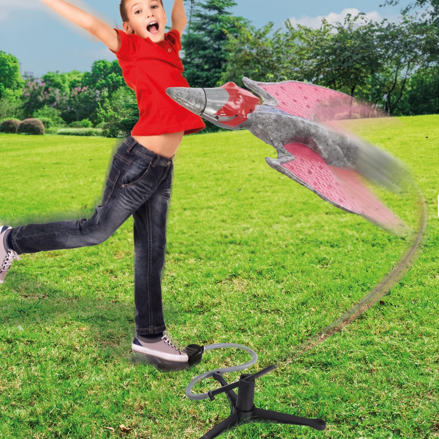 - BONUS ROCKETS - 2 additional rockets that fly up to 200ft are included. A perfect garden toy gift for outdoors fun, have fun with your friends and family to see who can send their dinosaur or rocket the furthest